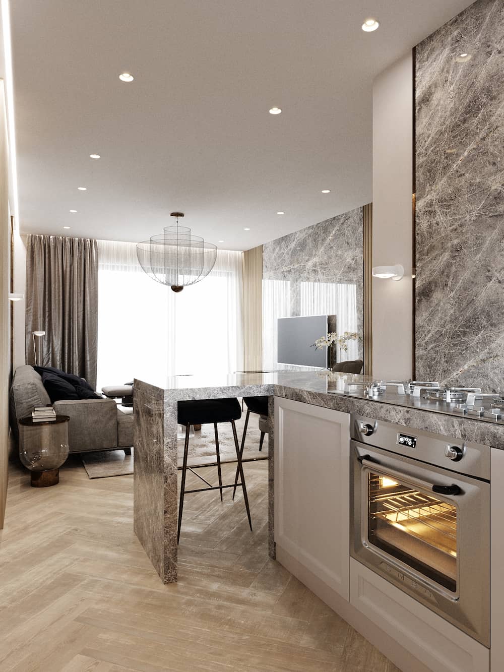 Egy kis ékszerdoboz elegáns és kifinomult konyha-étkező része. Itt biztosan kellemes lesz a főzéssel, sütéssel töltött idő.