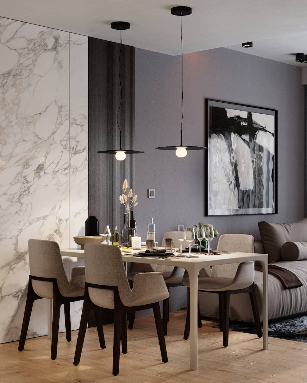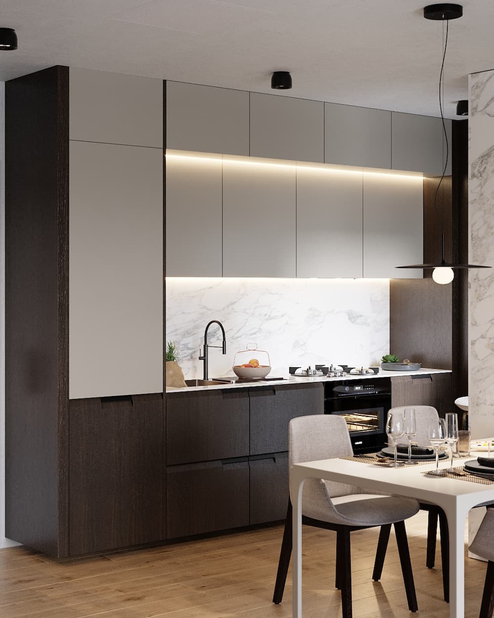 Stílusos, vagány és különleges megoldások jellemzik a lakás minden terét, amelyek közül ebben a mappában a konyha és étkező rész látható.